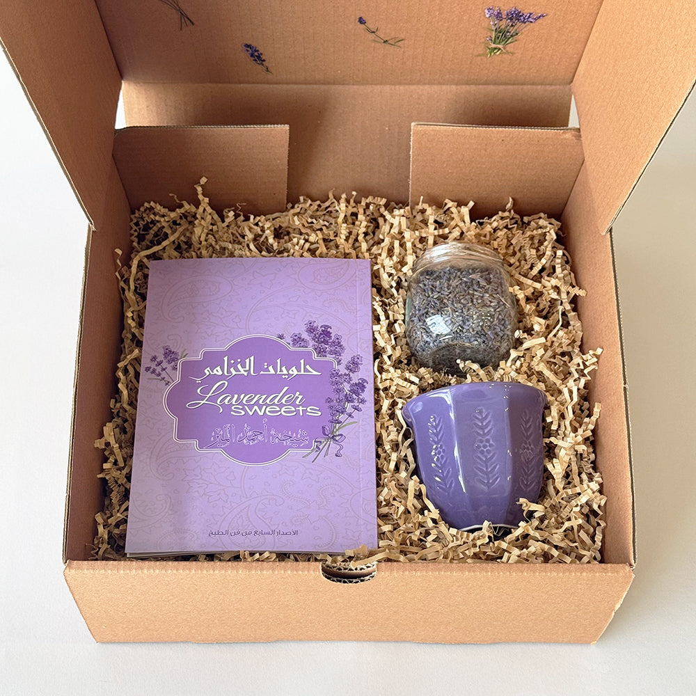 This Ramadan gift set is inspired by Lavender Sweets, a recipe book featuring the creations of our dear aunt. Created in honor of her kind soul and creativity, this set is designed to bring warmth and sharing during the holy month.