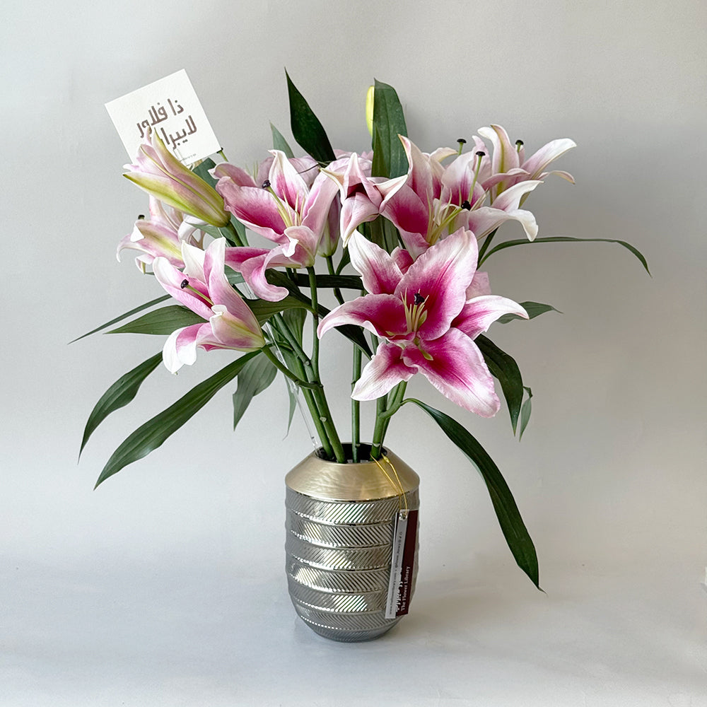 Lily stems in our Risoul metallic glass vase.